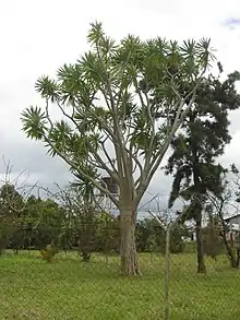 Dracaena steudneri, the northern large-leaved dragon-tree, is a species of flowering plant in the family Asparagaceae, found from Ethiopia to southern tropical Africa.[2][3] It is being investigated for its high-quality fiber content.[4] It is fed upon by larvae of the bush nightfighter, Artitropa erinnys. In the past the name Dracaena steudneri was erroneously assigned to the well-known ornamental and house plant Dracaena fragrans, called the cornstalk dracaena, striped dracaena, compact dracaena, and corn plant, leading to much confusion.[5]