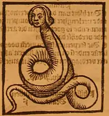 Vincent of Beauvais (c.1190–1264) describes this beast as a vast serpentine creature with the head, face and breasts of a woman.[1] In the Speculum naturale, he states:[2] Draconcopedes serpentes magni sunt, et potentes, facies virgineas habentes humanis similes, in draconum corpus desinentes ("Draconcopedes are great and powerful serpents, with maidenly faces like those of humans, ending in the body of a dragon").