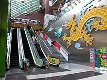 The ninth floor features Sky Fantasia (奇趣天地), a children's entertainment centre,[5] and an indoor roller coaster, the Sky Train (天龍過山車).[6] This hangs from the roof and was the second indoor roller coaster in Hong Kong (the first was located in the Wonderful World of Whimsy in Cityplaza), but it has been closed since the mid-2000s.[7] The eighth floor features an ice skating rink, the Sky Rink (飛龍冰上樂園),[5] and a food court.