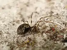 This species of spider weaves webs made of silk so fine that it seems invisible; it can only be seen if the light falls on it at the right angle. As a result of this 'invisible' web, it appears that the spider is resting on tree trunks - in reality, all 8 legs are resting on its web. The species of spider is found widely distributed throughout Britain and other areas of Northern Europe.[1]