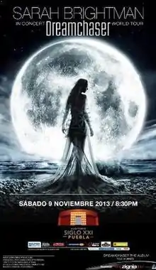The Dreamchaser World Tour was the fifth worldwide concert tour by English soprano singer Sarah Brightman in support of her album Dreamchaser (2013).[1] The North American tour had been planned to begin in early 2013, but all dates were rescheduled for late 2013. The tour was supposed to be Brightman's final concert tour before her trip into space (which the Dreamchaser album is based on) but the trip was later cancelled due to personal reasons.[2]