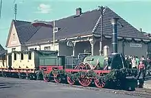 Adler replica in Sprendlingen station (today: Dreieich-Sprendlingen) during the line's 50th anniversary (1955)