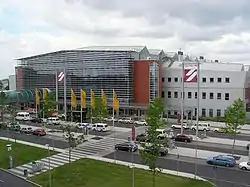 Construction began on connecting the airport to the S-Bahn network on 30 July 1998. The precast concrete tunnel was completed in the summer of 1999.[2] A 200 m-long flying junction for traffic approaching the airport via the Dresden-Görlitz railway was built at Dresden-Klotzsche station and a junction with two new electrified tracks was built for traffic to and from the airport. The total projected cost amounted to 84.3 million Deutsche Marks and was funded by the Free State of Saxony [2] On 25 March 2001, the new line was opened simultaneously with new Terminal 1 at the airport. Until the completion of the Leipzig City Tunnel the Dresden Airport station was the only underground station in Saxony.