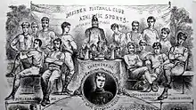 In April 1874, the Illustrirte Zeitung [sic] of Leipzig reported on the establishment of an association "calling itself Dresden Football Club (D.F.C.)" to play a game "in which the ball is propelled forward with the foot", and described: "some twenty young men in a costume, namely in different colours to distinguish them. A kind of woollen or silk underjacket, with or without sleeves, short-fitting leg coverings that show the bare knee, long stockings, [and] very comfortable shoes or lace-up boots make up the ensemble."[7][3]