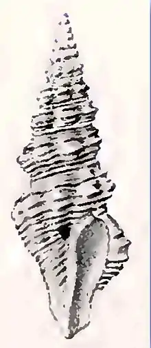 A. brightly coloured species, in shape attenuate-fusiform. The shell contains 11 whorls, with a small, vitreous, bulbous protoconch. The remainder is suturally considerably impressed. The shell is straw-coloured with closely ranged spiral lirae of dark chestnut alternating with ochreous. In the centre of each whorl is a white spiral band, bringing into prominence the strongly modiiled ribs of the angle of the whorl. The aperture is oblong. The outer lip is thin.[1]