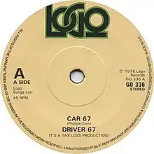 "Car 67" is a novelty song by 'Driver 67' released in November 1978. It was in the UK Singles Chart for twelve weeks, reaching a high of No. 7 in February 1979.[1] The song is a ballad revolving around a cab driver who had split up with his girlfriend the previous day and how he is refusing to make a particular pick-up at 83 Royal Gardens (the passenger, unbeknownst to the controller, is the woman in question). The song is arranged as the taxi driver singing the lyrics, interspersed with the voice of the taxi controller; the latter of whom has a distinctive West Midlands accent.