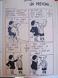 Fred and Mile (French: Fred et Mile) is a comic strip created in 1931. Hergé drew it for the Catholic newspaper Mon Avenir (My Future), a paper meant for future members of a Catholic action group. Only one strip was published, called Forewarned is Forearmed! (French: Un prévenu en vaut deux!, literally "A forewarned person is worth two [others]").