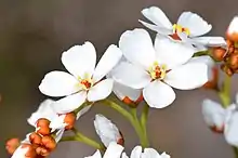Drosera gigantea, the giant sundew,[1] is an erect perennial tuberous species in the carnivorous plant genus Drosera that is endemic to Western Australia. It grows in sandy soils at the margins of swamps and near granite outcrops along the Western Australian coast from Albany north to just south of Geraldton. D. gigantea produces small shield-shaped leaves along many lateral branches that look like a small tree. Individual plants can grow up to 0.2–1 m (0.7–3.3 ft) tall.[1] Because of its tall, tree-like form, it is considered one of the largest Drosera species. It is also easily cultivated and enjoys damp, humid conditions often provided in greenhouses.[2] White flowers emerge from August to November.[1] The red tubers of this species can grow to be 3.8 cm (1.5 in) in diameter and may be a metre below ground.[2][3]