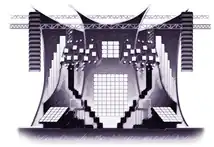 Two sketches created of the Drowned World Tour's stage.