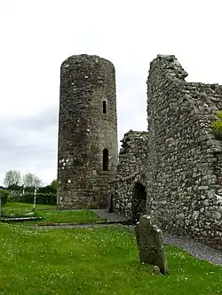 Drumlane (Irish: Droim Leathan, meaning 'The Broad Ridge') is a townland situated near the village of Milltown, area 85.76 hectares (211.93 acres), in County Cavan, Ireland. Drumlane is also the name of the civil parish in which the townland is situated.[2] Saint Columba brought Christianity to Drumlane in 555, and Saint Máedóc of Ferns was the patron saint of Drumlane Abbey. Saint Máedóc made the Connachta nobleman Faircheallaigh the first Abbot of Drumlane in the 7th century and his Ó Faircheallaigh descendants were historically the Abbots of Drumlane. The name Drumlane denotes the drumlin region of low hilly ribbed moraines formed over a limestone bedrock created by the movement of glacial ice and melt water during the last ice age. Several townlands in the neighbourhood are prefixed with the word 'Drum' ('Droim'), while several others are prefixed with the word 'Derry' ('Doire'), which is Irish for oak.