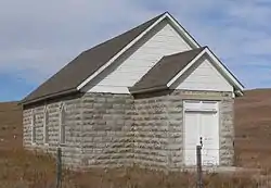 Religious services in the area were begun in the early 1900s. A Sunday school was organized in 1909. In 1910 tent meetings at Wells, Nebraska were started. Plans for the "Dry Valley Union Congregational Church" were set in 1910, land was donated by Robert Boyer, and the cornerstone was laid on June 3, 1911. It was built of concrete blocks by E.L. Holland. The membership withdrew from the Congregational denomination in 1924; a Methodist church held funerals and selected other services thereafter. The church was not used for services from 1958 until 1986, when a group of women led a restoration effort.[2]