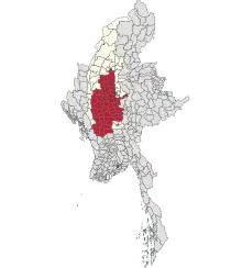 The Dry Zone, also called Anyar (Burmese: အညာ) is a region of Myanmar located in central Upper Myanmar. The population centre of the country, as much as nearly one third of Myanmar's population lives in the Dry Zone.[1] It is the primary location of ethnic Bamar and has served as the power centre for governments throughout Myanmar's history, including modern military juntas.