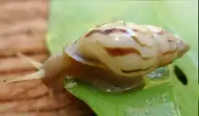Drymaeus strigatus is a species of tropical air-breathing land snail, a pulmonate gastropod mollusk in the family Bulimulidae.