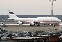 Boeing 747-400 of the Dubai Air Wing at Domodedovo International Airport, Russia in 2009.