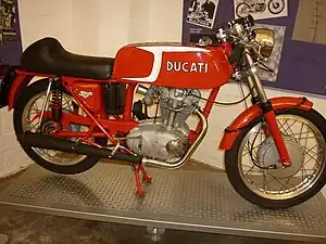 The Ducati 250 24 Horas (24 hours) is a 247 cc (15.1 cu in) single cylinder bevel drive SOHC motorcycle produced by the Spanish manufacturer MotoTrans, who were licensed by Ducati to produce motorcycles under the Ducati brand name. The model was based on the 'narrow case' Ducati 250 and produced in three series from 1966 to 1974.[5] It was named after Ducati's successes in the 24 hours of Montjuïc endurance races. Around 2,000 machines were produced in total.[1]