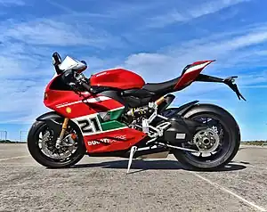 The Ducati Panigale V2 is a 955 cc (58.3 cu in) V-twin engine sport bike manufactured by Ducati as the successor to the Panigale 959. The motorcycle is named after the manufacturing district of Borgo Panigale. It was announced in 2019 for the 2020 model year. Chassis is a very similar monocoque with stressed-member engine; the engine bore and stroke remained the same; some re-engineering resulted in a 5 horsepower (3.7 kW) increase and Euro 5 emissions compliance.[1]