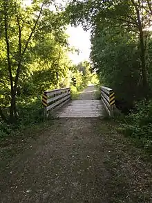 The Duck Creek Trail is a crushed limestone trail in Outagamie and Brown Counties in northeast Wisconsin. The Duck Creek Trail spans seven miles (11 km), beginning at the eastern end of the Newton Blackmour State Trail, just east of Vanderheuvel Road in Seymour (44°30′35″N 88°18′36″W / 44.50972°N 88.31012°W). The trail continues east through the Oneida Nation of Wisconsin in northern Outagamie County paralleling State Route 54, and continues to the Village of Oneida (44°30′27″N 88°11′03″W / 44.50737°N 88.18406°W). The Duck Creek Trail will eventually extend to Pamperin Park in Green Bay.