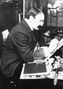 In the early 1900s he produced a range of comical postcards,[10] and in 1909 a series of caricatures for the souvenir programme of the Doncaster Aviation Meeting, England's first airshow.[11] Hardy was included by Percy Bradshaw in his The Art of the Illustrator which presented a portfolio containing a biography of Hardy, an illustration of him in his studio and an explanation of his method of working, accompanied by an illustration typical of his work and other plates showing its production.[12] Hardy's coloured illustration shows three different views of a standing man on the north African coast.[13]