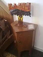 Cambelotti was born in Rome. He received a diploma in accounting, but soon after receiving it he enrolled at an applied arts education program at the Industrial Artistic Museum in Rome,[1] where he learned metal engraving. He also travelled to Naples, Athens and Istanbul to learn more.[2] He was a proponent of the ideas of William Morris, and like Morris believed in the need to restore craftsmanship and quality to visual art, ornamentation and design. Cambellotti was also drawn to the visual vocabulary of Art Nouveau. He produced illustrations in that style for magazines, books and newspapers, and his furniture design (he was known for "Cambellotti lamps" and tables) is considered emblematic of Art Nouveau concepts. His gifts were recognized and his illustrations of Dante's Divine Comedy won the Alinari Prize in 1901[3] while he was still in his twenties. He discovered theater production and set design a few years later and quickly established a name for himself in that area as well. Yet another medium he that suited his sensibility and talents was stained glass, and from 1910 into the 1920s he exhibited notable stained glass works,[3] in addition to being one of the organizers for the shows themselves.