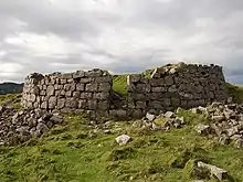 Surrounding the dun is an outer wall which runs along much of the edge of the knoll on the landward side.[1]