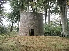 A number of old windmills that were no longer required were converted to other uses such as barns, stores, ice-houses, look-out towers and dovecotes.[3] Dunbarney is a typical example of a vaulted tower mill, as are those at Sauchie, Gordonstoun,[4] Monkton and Ballantrae.[5]