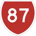 The motorway then descends from the slopes of Saddle Hill onto the floodplain of the Taieri River at Mosgiel. There is a full diamond interchange with SH 87, the primary access to Mosgiel from SH 1. At this point the motorway narrows from four lanes to two. The motorway designation continues for a further 600 metres before SH 1 continues as an ordinary single carriageway through the suburb of East Taieri.