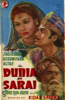 Duniya Ek Sarai is a 1946 Hindi-language film.[1] Meena Kumari, after her career as a child artist, started doing adult roles as heroines in mythologicals and fantasy genres before she made it in mainstream cinema with Baiju Bawra (1952).[2]