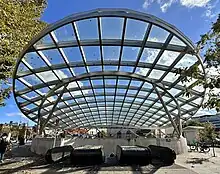 In April 2019, construction began on a station canopy for the north entrance, identical to other canopies across the system. Construction was set to be completed in summer 2022.[16] However, construction was delayed due to the contractor that was supposed to provide the custom glass panels going bankrupt.[17]