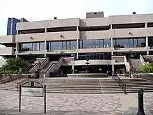 The "Old Main" Administration Building was the first structure to be constructed on campus. The Victorian Gothic structure is still used to house the administrative offices of the university. Canevin Hall, named after bishop of Pittsburgh Regis Canevin, was constructed in 1922 and is the oldest classroom building on campus; it was renovated in 1968 and again in 2009. These two buildings, as well Bayer Hall, the Richard King Mellon Hall of Science (designed by Ludwig Mies van der Rohe), and the Victorian Laval House, are at the west end of Academic Walk, a thoroughfare that provides pedestrian-only access to most of the campus, including the Student Union. The Union, which houses meeting rooms, three dining facilities, a Starbucks, a PNC branch, a recreation center, and an art gallery, is the center of campus life and student activities.[18] Located on the northern side of campus is the Gumberg Library, a five-story structure opened in 1978 and holding extensive print and electronic collections.