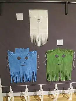 Various ritual methods are used to cure disease. If part of a child's soul has escaped, the shaman holds rituals to put it back inside the body.[6] When a malevolent force has attached to the patient, small-scale healing ceremonies may be held to detach it.[7] Sometimes, the shaman confines the patient and makes them follow certain taboos in order to be cured.[8] Large-scale rituals, or gut, are required for certain diseases such as smallpox. In these rituals, the shaman engages in active communication with the gods or ancestors that have brought on the disease and convinces or intimidates them into departing or taking mercy.[8][9]