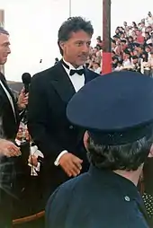 Hoffman studied at the Los Angeles Conservatory of Music before he decided to go into acting, for which he trained at the Pasadena Playhouse. He received two Academy Awards for Best Actor, for Kramer vs. Kramer (1979) and Rain Man (1988). His other Oscar-nominated roles are for The Graduate (1967), Midnight Cowboy (1969), Lenny (1975), Tootsie (1982), and Wag the Dog (1997).[5][4] Other notable roles include in Little Big Man (1970), Papillon (1973), Marathon Man (1976), All the President's Men (1976), Ishtar (1987), Dick Tracy (1990), and Hook (1991).[6]