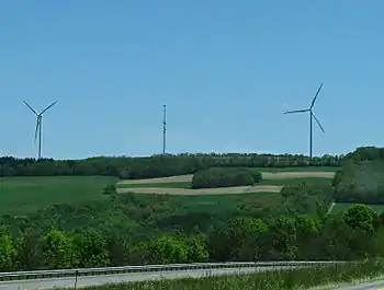 The Dutch Hill/Cohocton Wind Farm is a 125 Megawatt wind farm in Cohocton, New York. It uses 50 2.5 MW turbines of the Clipper "Liberty" type,[1] which were the largest found in the United States when they were put up for sale. The wind farm provides power for about 50,000 Northeastern homes. The wind farm is located in Steuben County. It was installed in 2008 and was developed and operated by First Wind.[2]