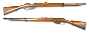 The Geweer M. 95, also known to collectors as the Dutch Mannlicher, was the service rifle of the armed forces of the Netherlands between 1895 and 1940 which replaced the obsolete Beaumont-Vitali M1871/88.[2][3] At first it was produced by Steyr for the Dutch, but after 1904, production took place under license at a Dutch state weapon factory in Zaandam known by the name of close by Hembrug bridge.[4][5] Although often regarded as being based on the earlier Mannlicher 1893 Model, the rifle is in fact a modification of the Mannlicher rifle by August Schriever and the Dutch rifle commission.[6][7] The Dutch issued about 470,000 M.95s.