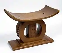 Often made of wood, the dwa is more or less decorated according to the status of its possessor,[1] it has great institutional and symbolic importance among the Akan.[2] These stools are rectangular in shape and have five supporting pillars (annan).[3] The royal seat or ahennwa is considered the "soul of the nation", once enthroned the king (ahene) becomes as sacred as the seat.[4][5]