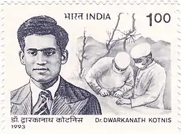 Dwarakanath Shantaram Kotnis (10 October 1910 in India – 9 December 1942), also known by his Chinese name Ke Dihua (Chinese: 柯棣华; pinyin: Kē Dìhuá), was one of the five Indian physicians dispatched to China to provide medical assistance during the Second Sino-Japanese War in 1938. Known for his dedication and perseverance, he has been regarded as an example for Sino-Indian friendship and collaboration.