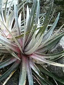 The subfamily Pitcairnioideae contains several "terrestrial" members of the Bromeliaceae, with cultivated genera including Dyckia, Hechtia, Pitcairnia and Puya. They are endemic to arid and high-altitude regions of Brazil and the central part of South America.[1][2][3]