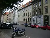 Dyrkøb (lit. " Expensive Purchase") is a street in the Old Town of Copenhagen, Denmark. It runs along the south side of Church of Our Lady, linking Nørregade in the west with Fiolstræde in the east. Kunstnerkollegiet, a dormitory from 1815 designed by Christian Frederik Hansen, is located at the corner with Fiolstræde.