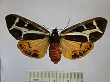 - ↑ Becker, Vitor O. (September 15, 2013). "Taxonomic changes in the Neotropical Pericopina and Ctenuchina moths (Erebidae, Arctiinae, Arctiini), with description of new taxa" (PDF). The Journal of Research on the Lepidoptera. 46: 53–66. Archived from the original (PDF) on December 24, 2013.