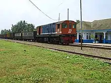 The EMD G18 was an export locomotive introduced by GM-EMD in the late 1960s. The standard EMD suffixes applied after the G18 designation to indicate if the customer purchased locomotives with specific traction motors to fit narrow gauge (U) or broad gauge (W) rails. An (L) indicates a locomotive built with a lightweight frame, and (6) indicates A1A-A1A trucks. The similar EMD GA18 was a G18 designed as an extremely light locomotive with low axle loading and used freight car trucks driven by a cardan shaft and underframe mounted traction motors like its predecessor, the EMD GA8. A further variation was the G18B. They are powered by an EMD 8-645E prime mover rated at 1100 bhp and 1000 hp for traction[1] and were produced with A1A-A1A or B-B trucks.