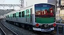 The EV-E301 series (EV-E301系) is a two-car battery electric multiple unit (BEMU) train type operated by East Japan Railway Company (JR East) on the Karasuyama Line and Tohoku Main Line since 15 March 2014.[1] The train goes by the nickname "Accum" (Akyumu).[2]