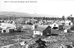 The area was first occupied by the Eagle Harbor Mining Company, who landed a party of men here during the summer of 1845, a man by the name of Sprague being its agent. On October 17, 1845, Franklin Hopkins arrived with thirteen men and resided within a tent. He arrived at Copper Harbor the night that Dr. Douglass Houghton drowned, and had to remain there for four days because of the memorable storm of October 13, 1845, which deprived the copper region of its most able and accomplished explorer and surveyor.[4][5]