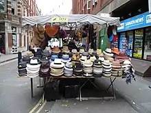 ![]() A hat stall on Earlham Street market | |