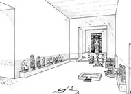 There is very little surviving evidence of what type of settlement Assur was in the early period.[13] Among the scant archaeological evidence recovered of early Assur are the remains of two temples built in mudbrick, both dedicated to the goddess Ishtar. Dubbed Ishtar H and G by modern researchers, the earlier one (H) has left almost no trace other than the lower stumps of its walls and can confidently be dated to the Early Dynastic Period as nothing has been found below it (indicating it was among the earliest structures at the site) and because some of the walls of the later temple (G) are directly above it. Ishtar G was composed of an oblong cella, an antechamber and a niche at its far end, perhaps designed to contain a cult statue. The structure of the less well-preserved Ishtar H was probably similar.[9] The architecture of the temples is suggestive of the ED II (c. 2750/2700–2600 BC) and ED III (c. 2600–2350 BC) periods.[46] Both temples appear to have been destroyed by being burnt down.[46]
