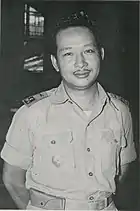 On 9 January 1962, Suharto was promoted to the rank of major-general and appointed to lead Mandala Command, a joint army-navy-air force command of 42,000 soldiers formed the organize the military aspect of the campaign to win Netherlands New Guinea (whom Indonesians referred to as "West Irian"), from the Dutch who were preparing it for independence outside of Indonesia, contrary to the provisions of Dutch-Indonesian Round Table Conference of 1949.[3] His position as Mandala commander, based in Makassar, provided martial-law power over Sulawesi, Maluku Islands, and Lesser Sunda Islands covering 5 million square kilometres. Suharto organized infiltration of around 3,000 Indonesian soldiers into the disputed territory by air and sea, although these infiltrators were mostly dropped deep in the jungle with no effect on Dutch control over population centers. With massive Soviet armaments and even manpower aid, Suharto formulated a highly risky plan to invade and capture Dutch military headquarters in Biak using 25,000 soldiers in an airborne and amphibious operation code-named Operasi Djajawidjaja set for 15 August 1962. However, Suharto received orders to abort the operation while he was already in-place at advanced headquarters in Peleng island, off Sulawesi. On 15 August, under heavy American pressure, the Dutch signed the New York Agreement whereby control over West Irian was relinquished to UNTEA (United National Temporary Executive Authority) in October 1962. On 1 May 1963, UNTEA handed-control of the territory to Indonesia. On that day, Suharto led a "victory parade" of Indonesian soldiers in front of President Sukarno at West Irian's capital Sukarnapura (formerly Hollandia, now Jayapura).[29]