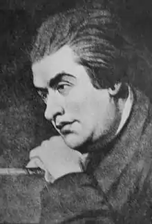 Ford was also a notorious alcoholic whose excesses contributed to his death six years after Johnson's visit.[32] This event deeply affected Johnson, and he remembered Ford in his Life of Fenton, saying that Ford's abilities, "instead of furnishing convivial merriments to the voluptuous and dissolute, might have enabled him to excel among the virtuous and the wise".[33] Having spent six months with his cousins, Johnson returned to Lichfield, but Hunter, "angered by the impertinence of this long absence", refused to allow him to continue at the grammar school.[34]