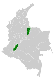 The East Andean antbird (Drymophila caudata) is a species of bird in the family Thamnophilidae. It is found at high levels in humid highland forests, especially near bamboo, and is endemic to the western slope of the Eastern Andes and the Upper Magdalena Valley in Caquetá and Huila in Colombia. This 15 cm (5.9 in) bird is found at high elevations of about 1,500-2,500 m. It was formerly considered conspecific with the Klages's antbird, the Santa Marta antbird, and the streak-headed antbird and together called the long-tailed antbird.