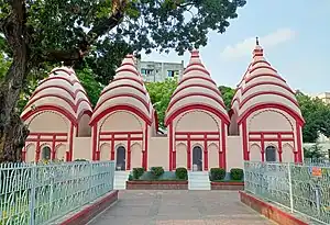 Bangladesh's capital Dhaka city name is said to have been derived from Dhakeshwari Maa (the Hindu Goddess Durga), whose shrine is located in the western part of the city.[14] In Bangladesh, there's exist a blending culture of Hindu, Muslim, Buddhist, folk religion, deities and practices. Worship exchanges takes place at temples and mosques and religious folk music gatherings (especially at Vaishnavite gatherings and among Muslim Sufis). Folk deities recognized by both Hindus and Muslim have included Shitala, the goddess of small pox, Oladevi, goddess of cholera, Manasa, goddess of snakes and are worshipped by Hindus and Muslims of Bangladesh both alike.[15]