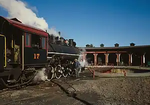 Four of the engines would run in steam on and off again from the 1960s to 2011 during the East Broad Top's era of preservation under the Kovalchick family, with three of them (#12, #14, #15) already back in service by the early 1960s to haul excursion trains.[7] The fourth engine to run in the Kovalchick era, #17 would return to steam in 1968.[8] The locomotives provided the star attractions of the East Broad Top's Winter Spectaculars, until the Winter Spectacular runs were terminated in the 1980s due to the stress being placed on the locomotives and rolling stock.[9] The explosion of Canadian Pacific 1278 at the Gettysburg Railroad in 1995 and the subsequent passage of stricter boiler safety laws caused financial strain for the East Broad Top to maintain their locomotive fleet. Only one locomotive would often be kept available for steam at a time from 1995 onto 2010, with #14 and then #15 being the primary locomotives to operate during this era (with #12 being retired in 2000 and #17 in the following year).[10]