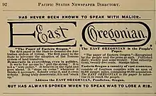 - ↑ "East Oregonian". Oregon Newspaper Publishers Association. Archived from the original on September 11, 2019. Retrieved April 4, 2020.