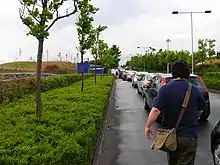 The park is not served directly by any public transport. To alleviate this, a shuttle bus fleet provide free-of-charge service to Clontarf Road railway station during railway operating hours; and to near the Point Village stop on the Luas red line during peak hours.[6]
